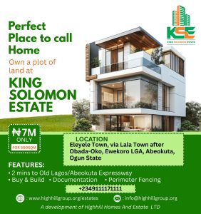 It is one of our estates that is currently selling. It is situated at Eleyele Town, Via Lala Town after Obada-Oko, Ewekoro LGA, Abeokuta, Ogun State Nigeria.